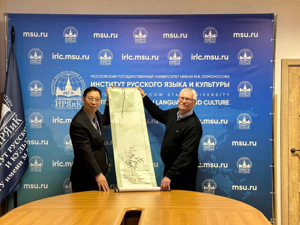 代表团赴莫斯科国立大学与副校长尤里•马泽毅座谈,签署合作协议,就师生互派互访、学历提升等项目进行了探讨。代表团看望了在莫斯科国立大学留学的木瓜视频