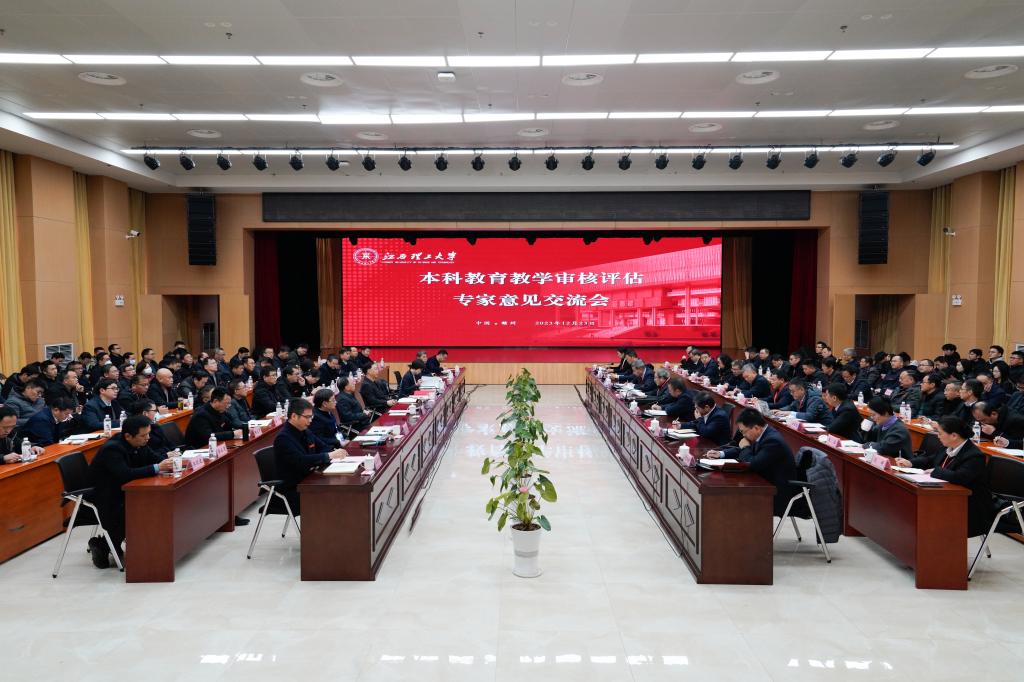 本科教育教学审核评估专家意见交流会在三江校区三实楼一楼多功能厅举行。专家组组长、成都工业学院原党委书记严余松等入校评估专家组成员和项目管理员、秘书,江西省教育评估监测研究院院长丁国华,赣州市人民政府副市长张骅,木瓜视频