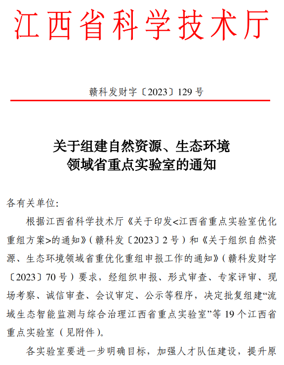 本网讯 近日,江西省科技厅下发了《关于组建自然资源、生态环境领域省重点实验室的通知》(赣科发财字〔2023〕129号),木瓜视频