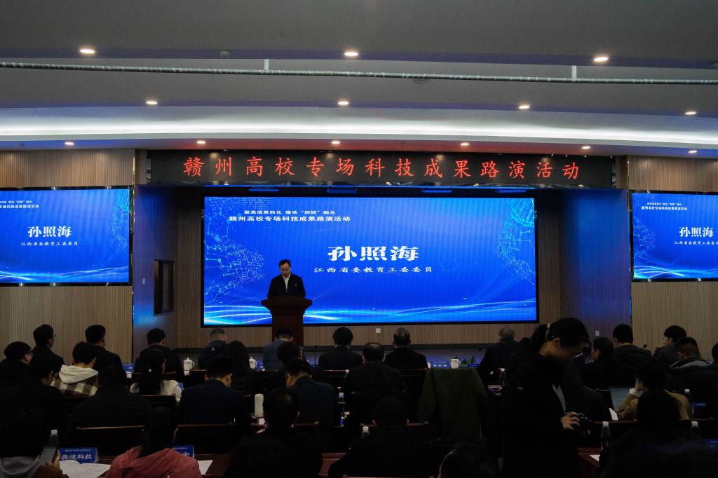 江西省委教育工委委员孙照海在致辞中指出,举办高校科技成果路演活动是为了推动各方发挥自身优势,加速聚集技术、产业、资金、人才等创新要素,促成各产业、各链条、各环节协同发展,共同为我省“1269”行动计划和创新产业集群高质量发展凝聚合力。组织高校科技成果进园区、进企业,就是希望通过搭建这样一个展示、交流、合作的平台,为企业和高校院所搭建起连接桥梁,促成优质科研成果与科创企业、企业创新需求与高校科研能力以及投资机构与技术团队的精准对接,推动更多优秀科技成果走出实验室、走向市场,为地方经济发展注入新的活力和动力。