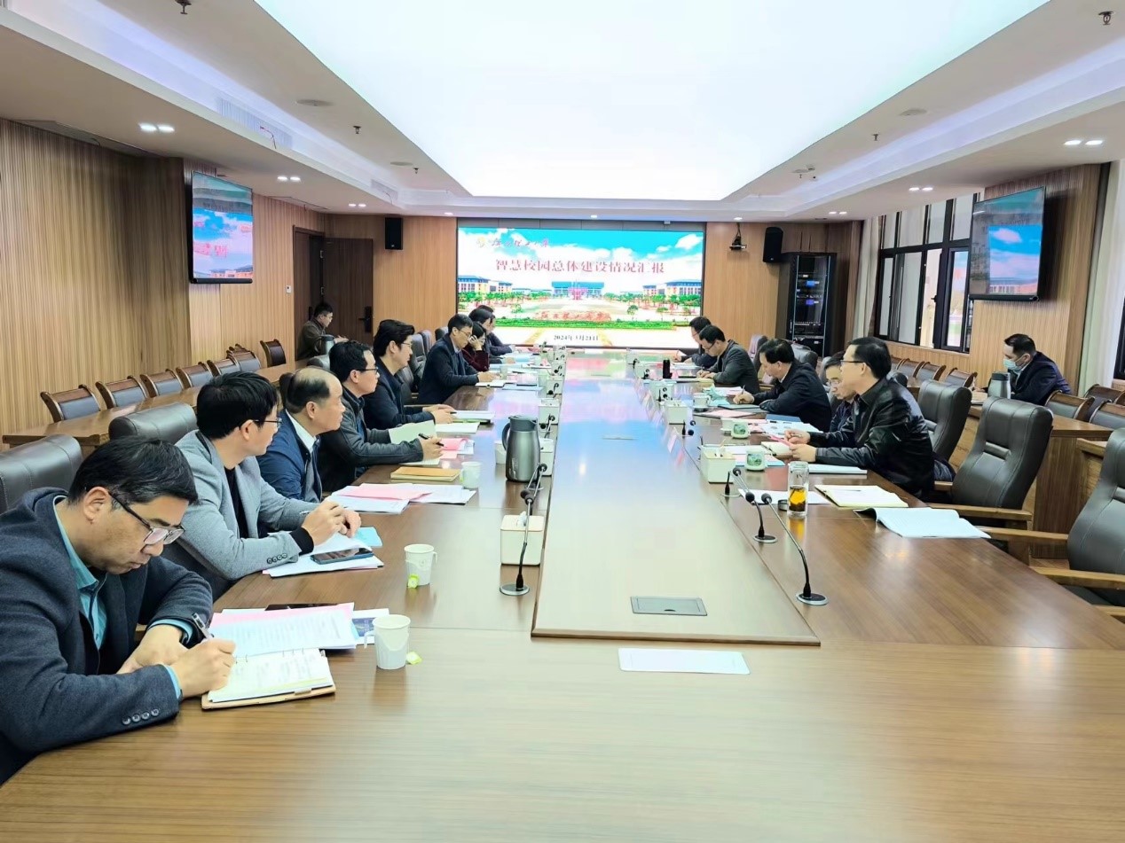 智慧校园建设与应用情况调度会在三江校区召开。学校全体在家校领导、校党委委员,相关部门主要负责人参会。会议由校党委常委、副校长熊志华主持。