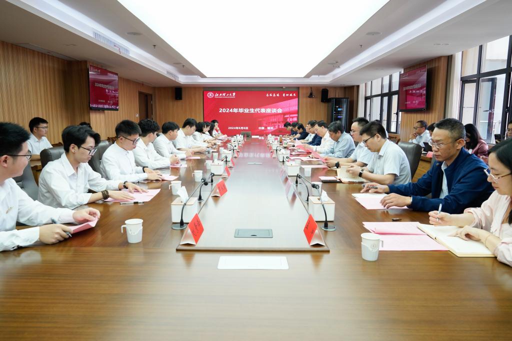 2024届毕业生代表座谈会在三江校区濂溪楼2号会议室召开。校党委书记杨斌,党委副书记罗仙平,党委常委、副校长熊志华出席会议,相关职能部门负责人,学院副书记、辅导员代表及各学院毕业生代表参加座谈会。熊志华主持会议。
