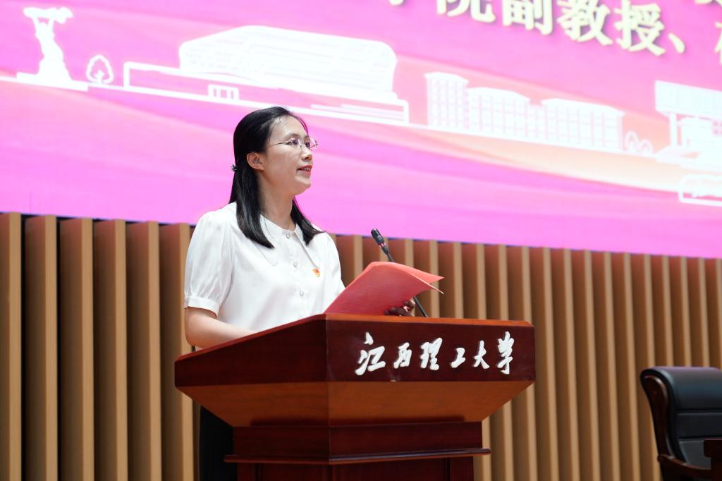 优秀教工党员代表、2024年优秀共产党员,会计学博士、江西金融发展研究院博士后,中国国际大学生创新大赛国家级银奖项目指导教师,经济管理学院副教授、硕士研究生导师赖妍分享了自己荣获优秀共产党员在工作中的经验和体会:一是要争当勤于学习、苦练本领的“引领者”;二是要争当锐意创新、敢闯敢试的“传播者”;三是要争当教师先锋、党员模范的“践行者”。