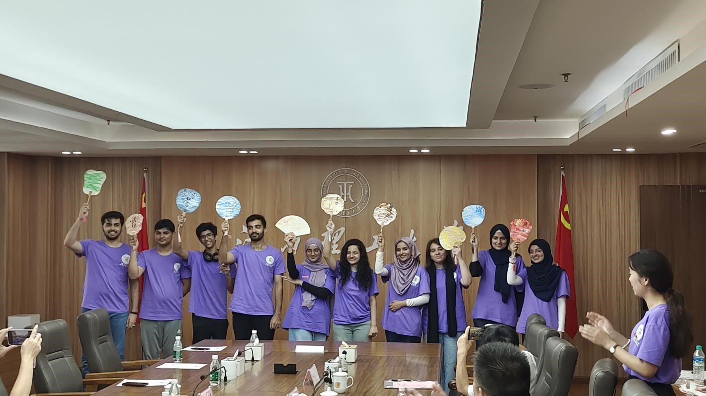 本网讯 7月23日上午,2024年“汉语桥”巴基斯坦学生夏令营结营仪式在濂溪楼2号会议室举行。巴基斯坦旁遮普大学、拉合尔工程管理大学、阿拉马伊克巴勒开放大学和拉合尔爱奇森学院共20名巴基斯坦师生参加此次结营仪式。校党委常委、副校长廖春发,孔子学院中方院长兼国际交流与合作中心(国际教育学院、港澳台事务中心)主任(院长)蔡进宝、体育与艺术学院副院长黄丽娜及相关教师出席仪式。