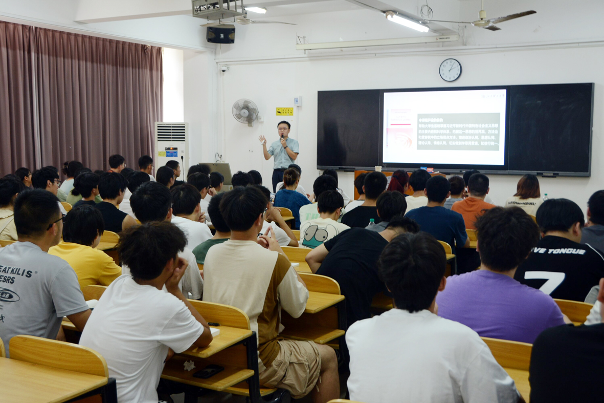 本网讯 9月4日下午,校党委书记杨斌,在校党委常委、副校长黄志繁,党委(校长)办公室主任熊淑华、南昌校区管委会分管日常工作副主任兼党委副书记陈小云的陪同下,在南昌校区听取新学年第一堂思政课。