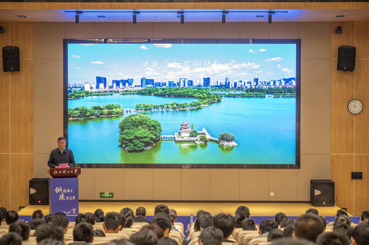 三江校区启航2号会议室顺利举行。校党委常委、副校长唐云志,铜陵市委常委、组织部部长郑刚,铜陵市及学校相关部门(学院)负责人、教师代表以及240余名学生参加活动。活动由铜陵市委组织部副部长、人社局局长都斌主持。