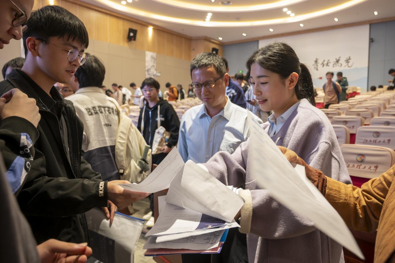 据了解,现场100余名毕业生向铜陵有色金隆铜业和铜化集团投递了求职简历。