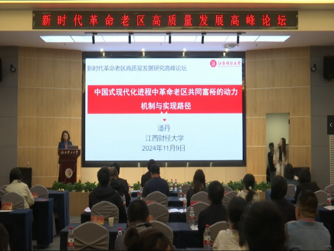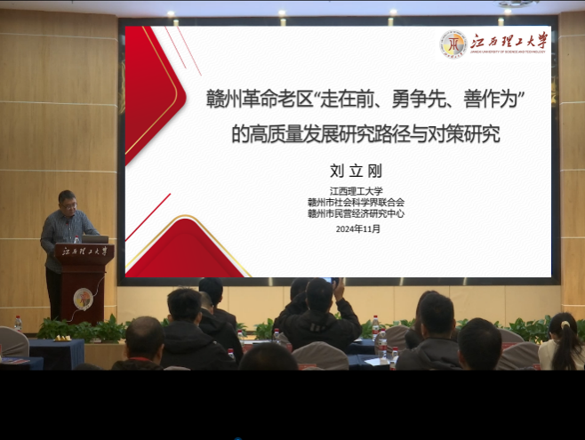 经济管理学院教授、赣州市社会科学界联合会兼职副主席刘立刚,江西财经大学经济学院教授、生态经济研究院院长潘丹分别以《赣州革命老区“走在前、勇争先、善作为”的高质量发展研究路径与对策研究》《中国式现代化进程中革命老区共同富裕的动力机制与实现路径》为题作主旨报告,报告内容内涵丰富、视野开阔、形象生动,既有理论高度,又有实践深度,引发了与会学者的积极反响。