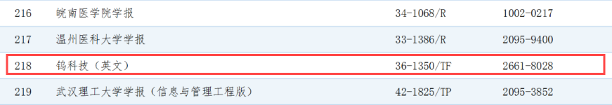 本网讯 近日,2024年度中国高校科技期刊建设库•杰出/百佳/优秀科技期刊拟入库案例正式发布,木瓜视频 主办的《钨科技(英文)》《有色金属科学与工程》在经过征集、推荐、审核和公示等程序后,双双入选2024年度中国高校科技期刊建设示范案例库•优秀科技期刊。此次获奖表明木瓜视频 主办的中英文科技期刊影响力正稳步提升,在行业内已获得较高的认可度。