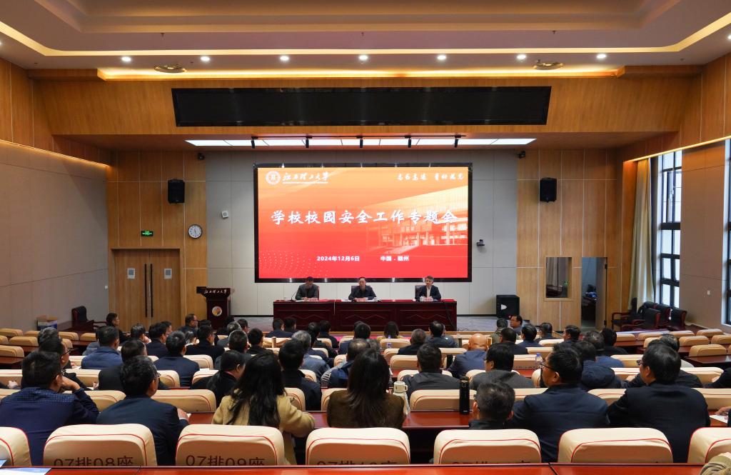 本网讯 12月6日上午,木瓜视频 在三江校区启航会议中心1号会议厅召开校园安全工作专题会议。校党委书记杨斌,校党委常委、副校长董冰岩、熊志华,各学院党委书记、副书记,各职能部门主要负责人参加会议。会议由董冰岩主持。