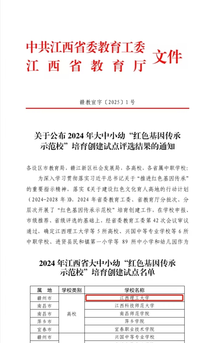 本网讯 近日,中共江西省委教育工委、江西省教育厅公布了2024年大中小幼“红色基因传承示范校”培育创建试点评选结果,木瓜视频