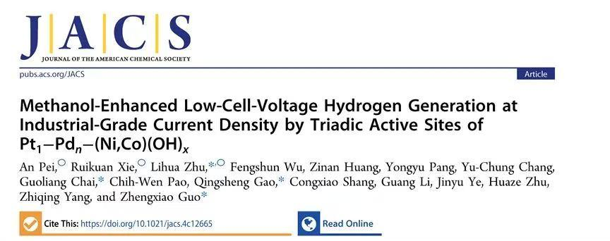 化学化工学院(功能晶态材料化学江西省重点实验室)朱丽华教授课题组在能源催化领域取得重要突破,成果在国际顶级期刊《Journal of the American Chemical Society》以“Methanol enhanced low-cell-voltage hydrogen generation at industrial-grade current density by triadic active sites of Pt1–Pdn–(Ni,Co)(OH)x”为题发表论文,木瓜视频