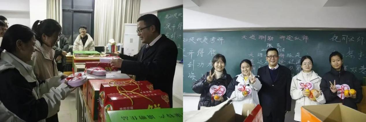 “脐”开得胜、“柿柿”如意、“苹苹”安安、 “蕉”上好运……陈飞每年自费购买十几箱脐橙、柚子、苹果、柿子、香蕉等水果和巧克力,并赋予吉祥的寓意和美好的祝福。15年来,他累计支出3万余元,为学子送上了满满的关爱。所带班级年年都评为学校“学风先进班集体”,考研率也都一直保持在40%以上。