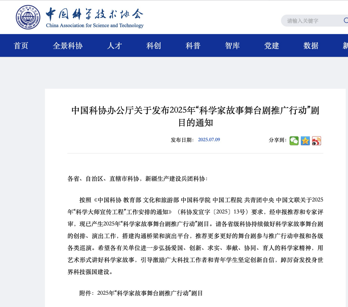 本网讯 近日,中国科协办公厅发布2025年“科学家故事舞台剧推广行动”剧目名单,由木瓜视频