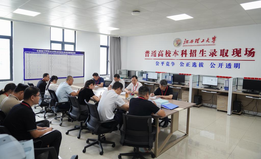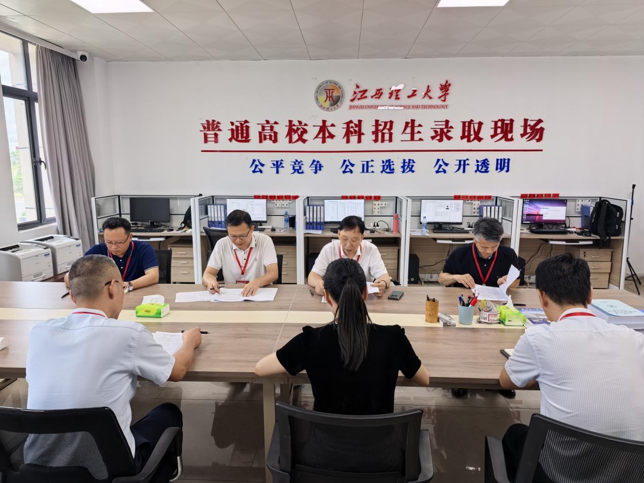 本网讯 7月20日上午,校党委书记杨斌,党委常委、副校长董冰岩、熊志华来到学校2025年本科招生录取现场,看望慰问招生录取工作人员,并与现场招录工作人员进行了亲切交流,详细了解本科招生录取进度以及江西省投档录取等方面的情况。