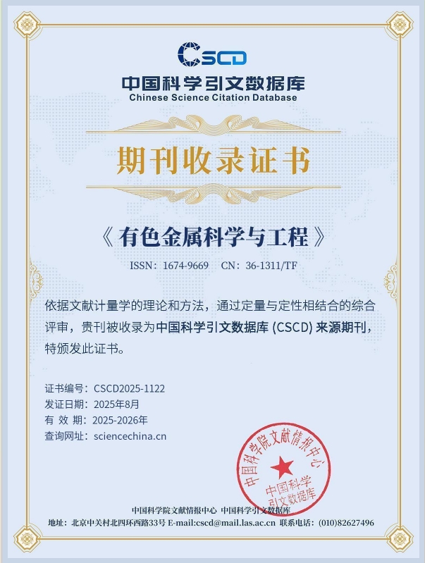主办的《有色金属科学与工程》被遴选为CSCD(2025—2026)来源期刊扩展版。这是本刊继被北大中文核心期刊、中国科技核心期刊、科技期刊世界影响力指数报告等数据库收录后,再度被国内高影响力数据库收录,标志着期刊的办刊质量和学术影响力持续稳步上升。这是继《钨科技(英文)》之后,木瓜视频