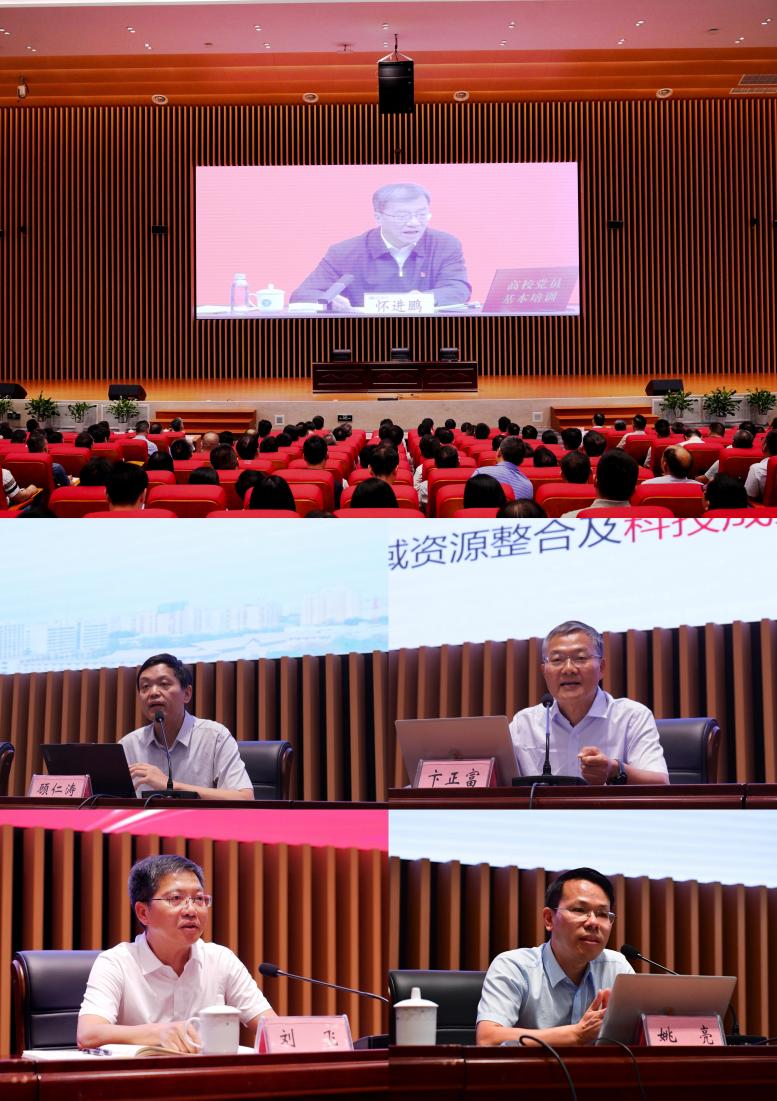 本次培训还围绕《深入学习贯彻习近平总书记关于教育的重要论述,落实全国教育大会精神》《勇于自我革命,从严管党治党》《加强科技成果转化是实现科技创新与产业创新深度融合的有效路径》《人工智能赋能教育变革》《建设具有强大凝聚力和引领力的社会主义意识形态》等专题开展了系统讲座,并分组进行了深入研讨交流。