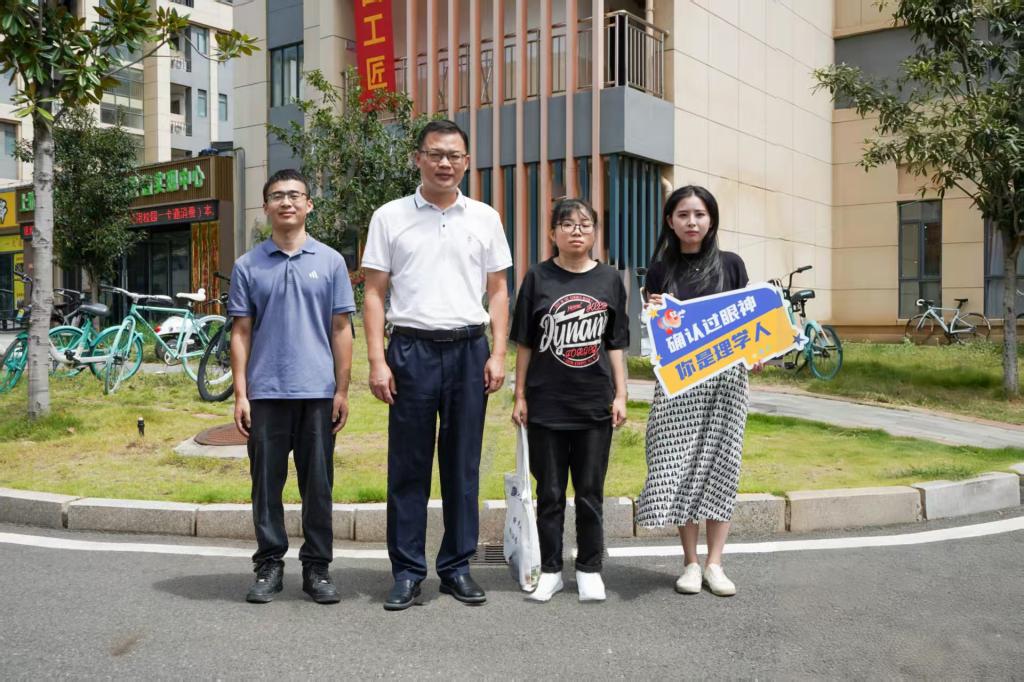 校园时,校领导熊志华、刘飞来到学院报到点,亲切问候易晓灵并寄语她努力奋斗,励志成才。