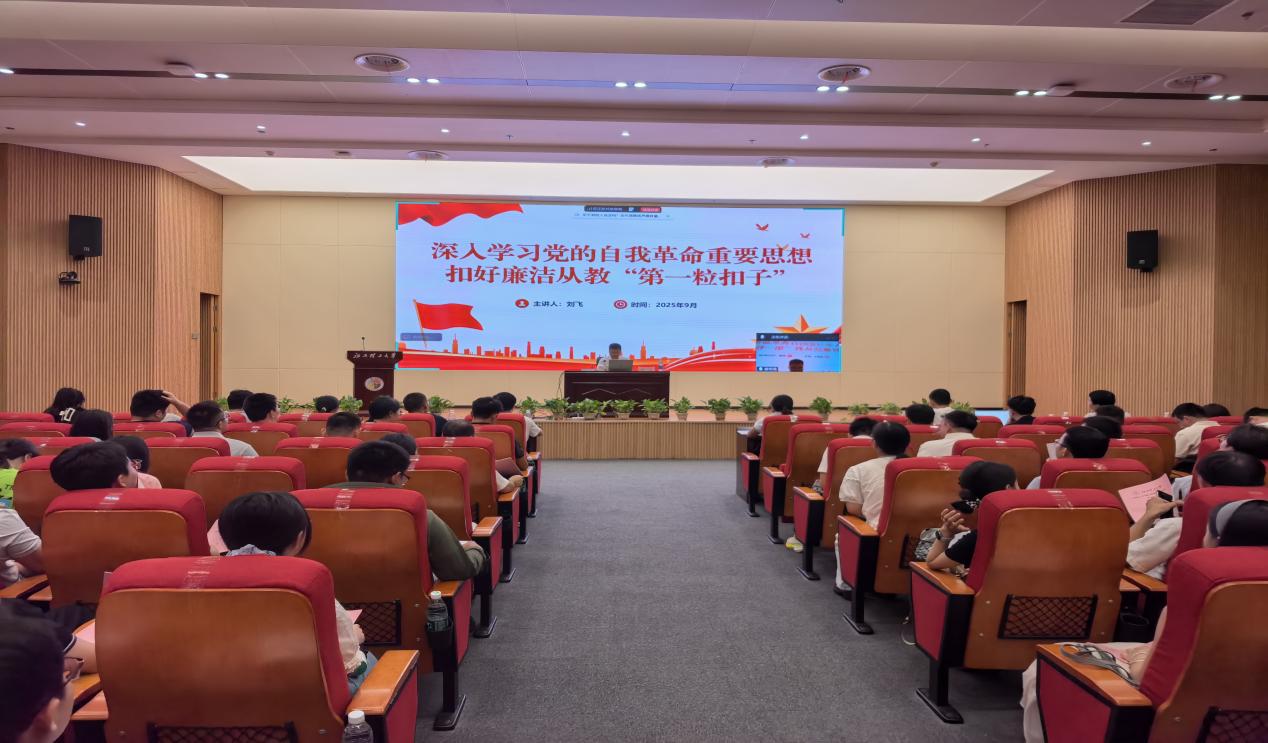 8日上午,校党委常委、纪委书记、监察专员刘飞出席并开展了第一堂专题讲座,他围绕强化理论武装、勇于自我革命、提升职业规范等方面向新入职教师进行廉政教育。同时,通过剖析高校及教育领域突出问题,以案为戒、以案示警、以案正风。他指出,新进教师要筑牢拒腐防变思想防线,扣好廉洁从教“第一粒扣子”,发扬自我革命精神,营造风清气正育人环境,为学校高质量发展贡献力量。