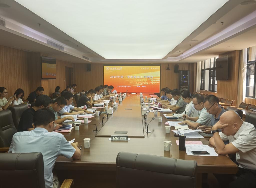 在三江校区濂溪楼2号会议室召开2025年第三季度科技工作调度会。校党委常委、副校长熊志华出席会议并讲话。科学技术处、技术转移转化中心全体人员,各学院(国创院)分管科研工作副院长及相关人员参加会议。会议由科学技术处处长吴彩斌主持。