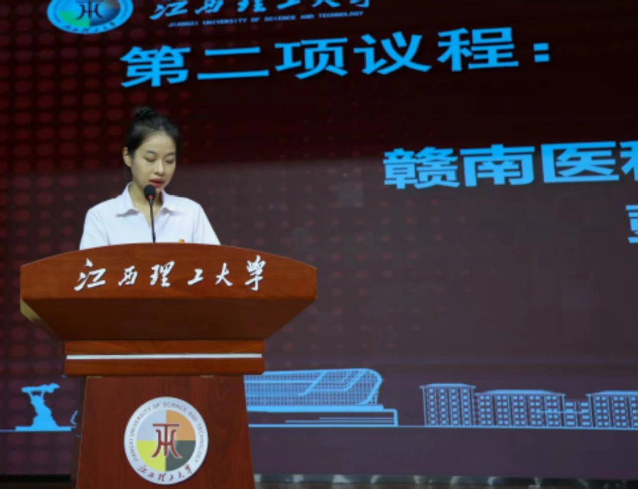 校党委副书记徐志峰出席大会。党委学生工作部、党委研究生工作部、校团委等部门负责人、大会正式代表参加会议。江西省学生联合会驻会执行主席李善柔同学致辞,赣南医科大学学生会执行主席彭怡毅同学致贺词。