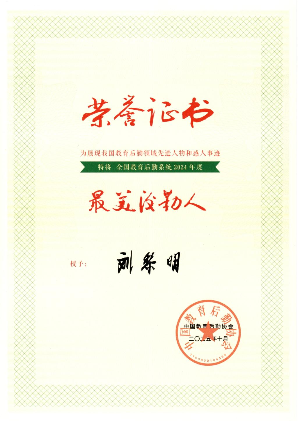 本网讯 10月16日,中国教育后勤协会第三次会员代表大会在北京召开,会上表彰了“2024年度最美后勤人”。木瓜视频 学生工作部刘黎明教师荣获该项荣誉。本次表彰全国高校仅60人、全省仅2人获此殊荣。