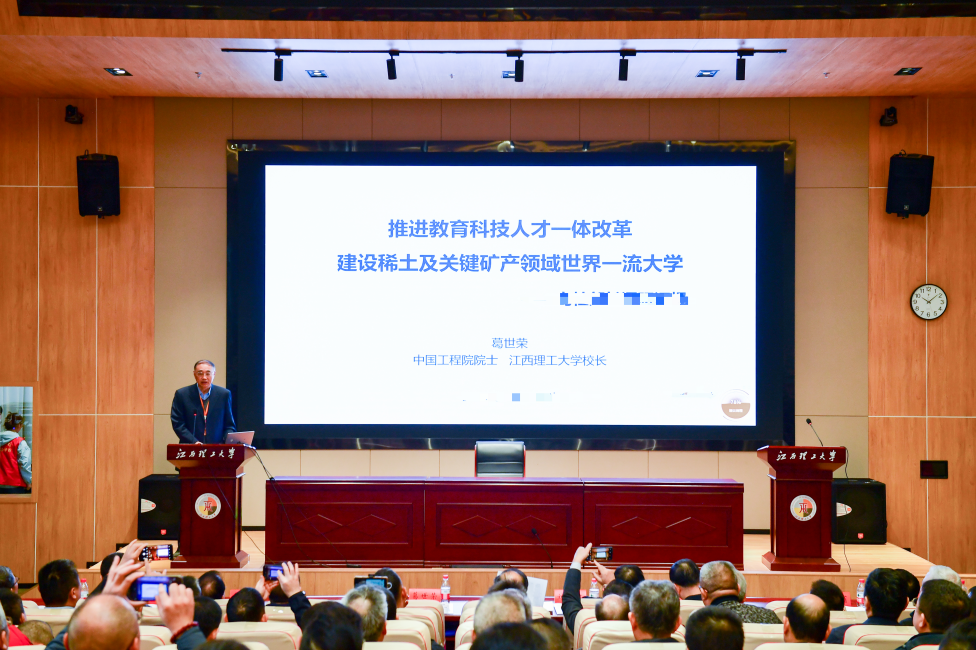 发展论坛上,葛世荣作“推进教育科技人才一体改革,建设稀土及关键矿产领域世界一流大学”专题宣讲。他指出,学校在稀土及关键矿产领域学科特色明显,科研成果丰硕,师资实力雄厚。学校聚焦稀土及关键矿产供应链安全,正在重构稀土技术、先进材料、关键矿产三大卓越创新中心,联合稀土及关键矿产领域科研院所和企业协同攻关,创新发展,全力冲刺稀土及关键矿产领域世界一流大学建设目标,深度服务国家战略与江西关键矿产发展。