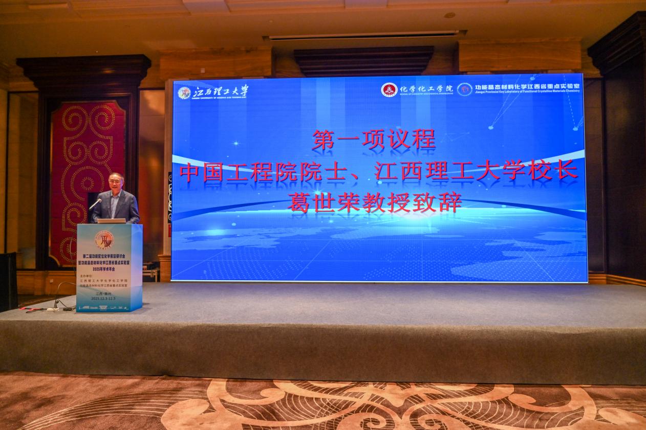 校长葛世荣教授代表学校致辞,葛世荣从学校六十余年来“因钨而生、因铜而兴、因锂而为、因稀土而特、因关键矿产而强”的办学历程,介绍了学校在学科建设、科研平台、社会服务等方面取得的标志性成果及学校在功能材料化学学科领域的布局与发展成果。他指出,学校将持续推进三大卓越创新中心建设,强化基础研究与应用研究的衔接,期待本次会议能进一步激发创新活力、推动学校相关学科发展。