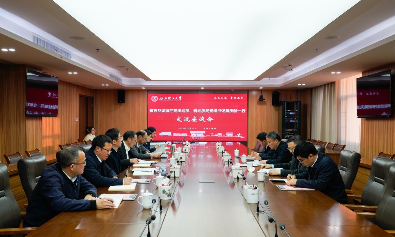本网讯 12月23日,省自然资源厅党组成员、省地质局党组书记黄庆龄一行来访木瓜视频 ,校党委书记刘祖文,中国工程院院士、校长葛世荣出席,双方就深化局校合作进行了深入交流。省地质局党组成员、副局长吴俊华,校领导徐志峰、熊志华、汪航参加座谈。