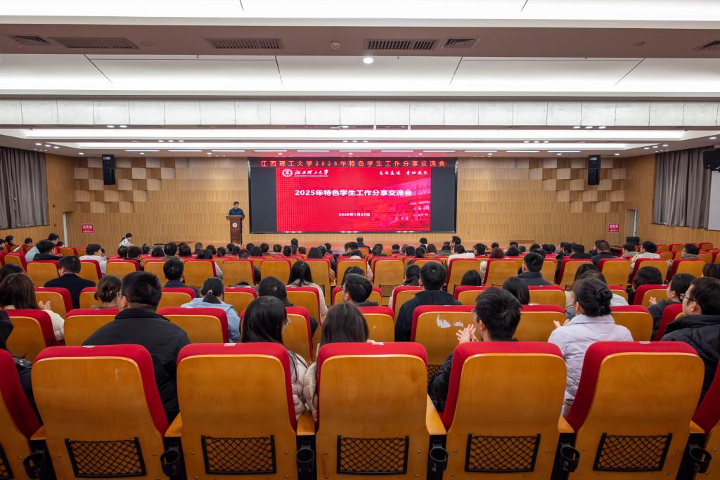 本网讯 1月23日,学校2025年特色学生工作分享交流会在三江校区图书馆报告厅举行。校党委书记刘祖文,校党委常委、副校长熊志华,宁洁出席会议。各学院分管学生工作领导,学工部、研工部、校团委、国际教育学院相关领导老师及全体辅导员参加会议。