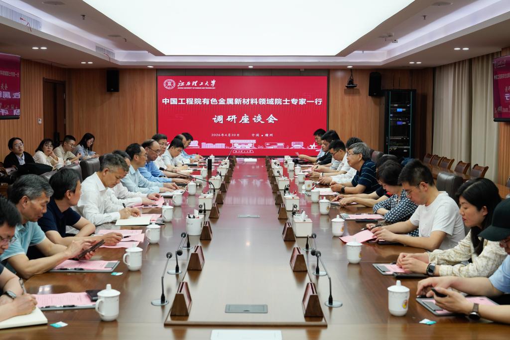本网讯 4月20日,中国工程院有色金属新材料领域院士专家一行来校考察调研。中国工程院院士刘炯天、戴圣龙,中国工程院三局副局长赵文成,江西省科学院、中国工程科技发展战略江西研究院及赣州市科技局、工信局有关领导参加调研。校党委书记刘祖文,中国工程院院士、校长葛世荣,校党委副书记徐志峰,副校长董冰岩、汪航及相关部门负责人参加座谈。会议由刘祖文主持。