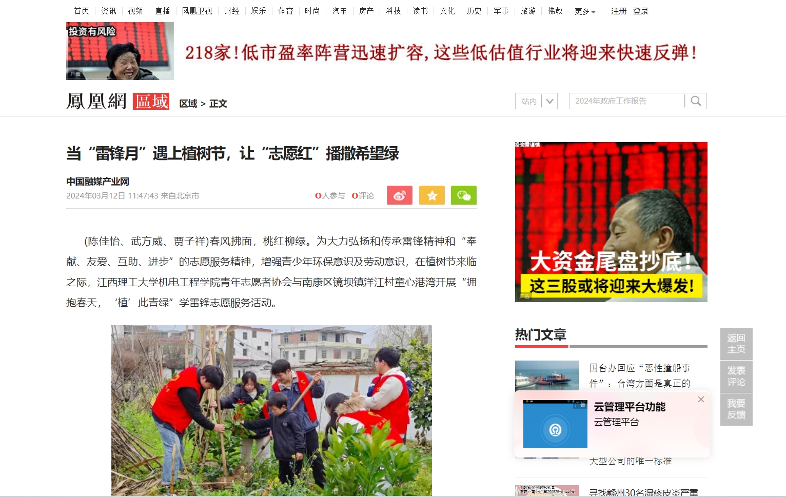 机电工程学院青年志愿者协会与南康区镜坝镇洋江村童心港湾开展“拥抱春天,‘植’此青绿”学雷锋志愿服务活动。