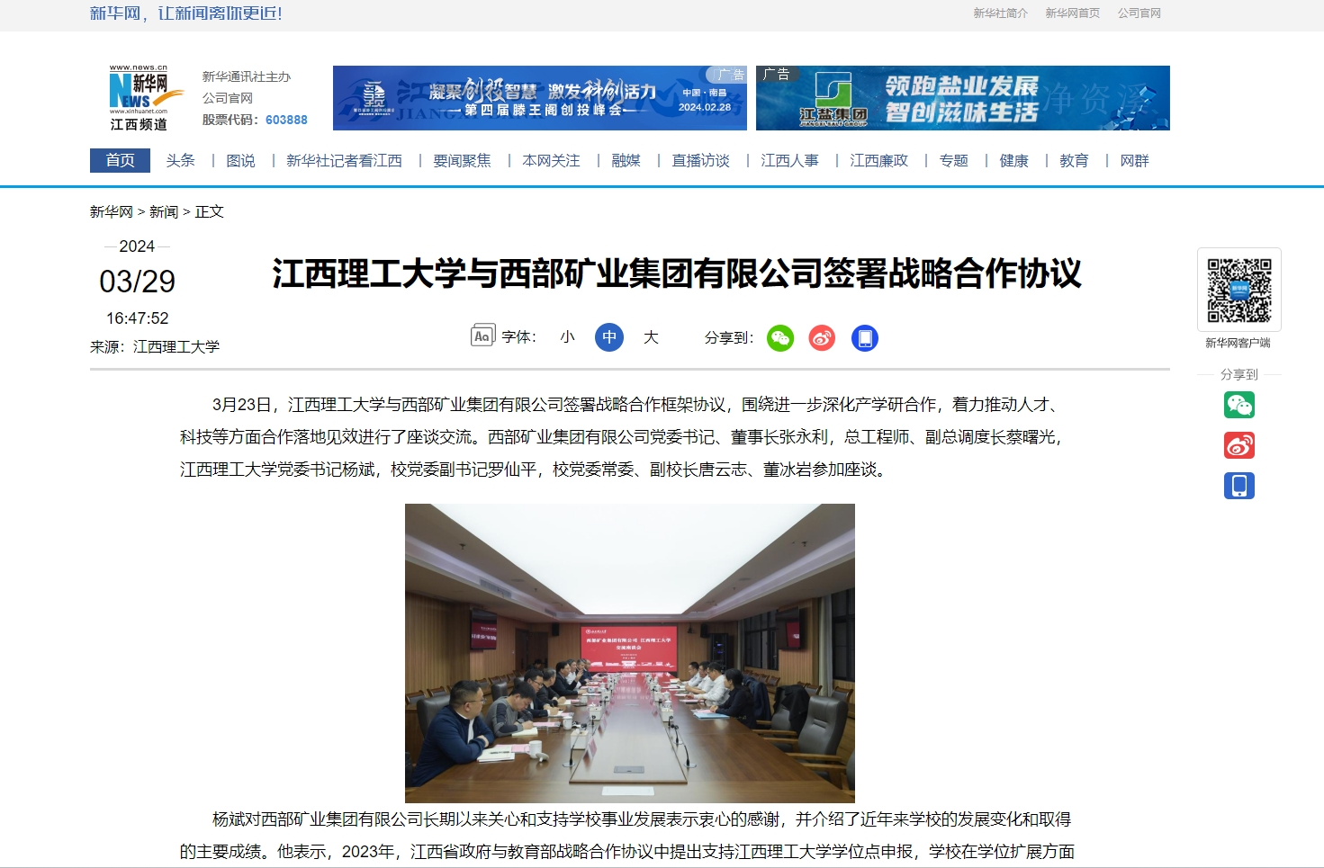 杨斌对西部矿业集团有限公司长期以来关心和支持学校事业发展表示衷心的感谢,并介绍了近年来学校的发展变化和取得的主要成绩。他表示,2023年,江西省政府与教育部战略合作协议中提出支持木瓜视频