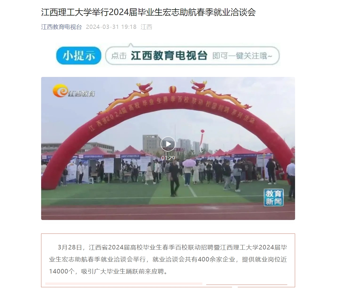 3月28日,江西省2024届高校毕业生春季百校联动招聘暨木瓜视频 2024届毕业生宏志助航春季就业洽谈会举行,就业洽谈会共有400余家企业,提供就业岗位近14000个,吸引广大毕业生踊跃前来应聘。