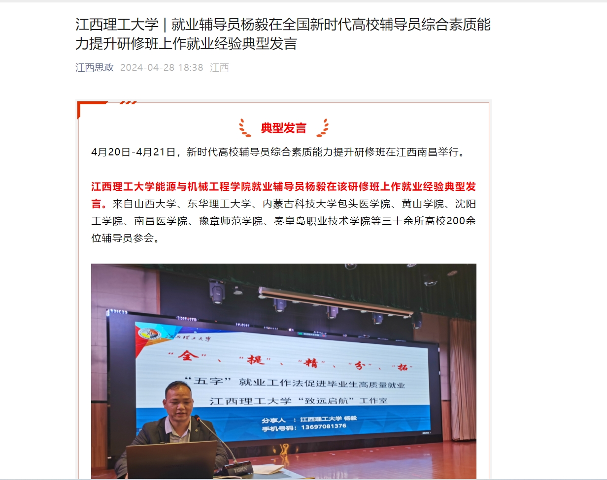 4月20日-4月21日,新时代高校辅导员综合素质能力提升研修班在江西南昌举行。