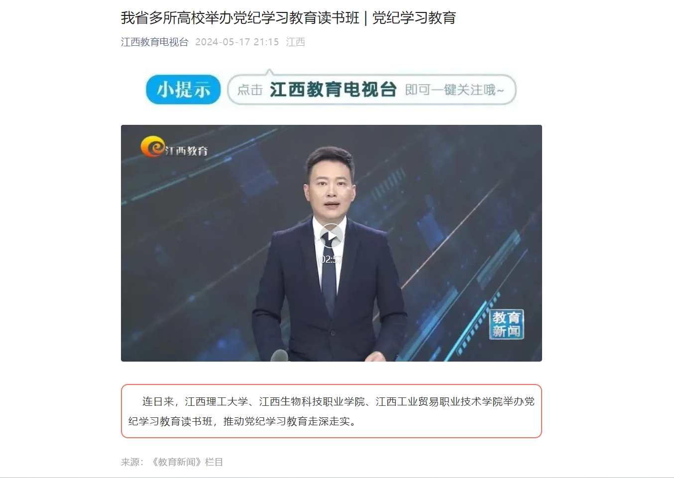 连日来,木瓜视频 、江西生物科技职业学院、江西工业贸易职业技术学院举办党纪学习教育读书班,推动党纪学习教育走深走实。