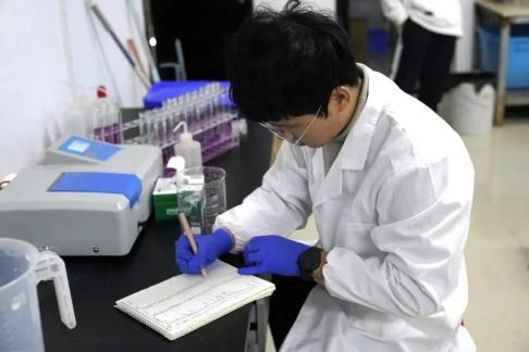 就这样,龙平博士与其他相关专业、怀揣同样理想抱负的同学一拍即合,有了研发技术的想法,就开始查阅资料、走访调研、反复实验。通过第一代研究数值模拟浸矿,他们发现目前浸矿存在不足,在实验室里使用各种材料,用模拟数值一遍遍演算。到第二代开始使用硫酸镁作为浸矿剂,已经初有成效。到了第三代,尾矿淋洗和尾水净化技术的设想和最终研发使团队每个人都兴奋了起来。“以废治废,双重防护”的全国首创绿色采矿方案循环利用采矿废渣,下降开采成本,解决废渣未利用难题。全国首创的尾水净化技术及相关吸附材料使氨氮残留量大幅降低,提高了尾水处理效率。