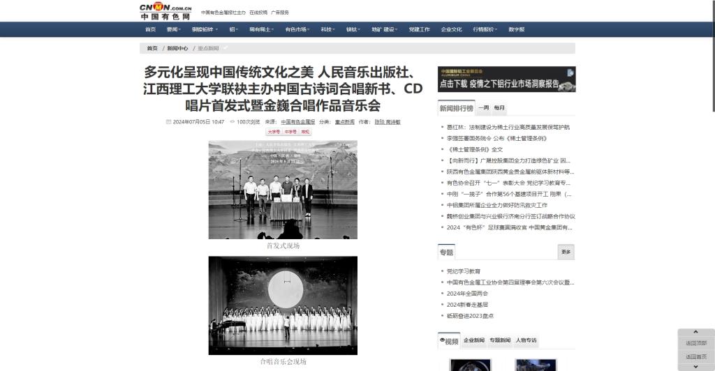6月22日、23日晚,《中国古诗词合唱45首》(以下简称中国古诗词合唱新书)、CD唱片首发式暨金巍合唱作品音乐会在江西赣州成功举办。首发式由人民音乐出版社、木瓜视频