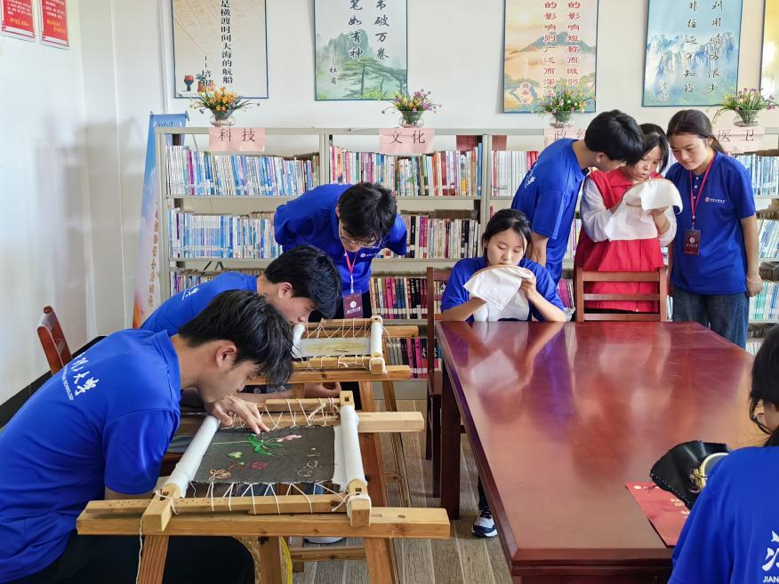 冶金工程学院“红炉”实践队走进中国历史文化名村——宁都县东龙村,通过体验客家刺绣、学习“茶篮灯”表演、“桥梆灯”村游等形式,与“非遗”传承人同台表演,感受传统文化之美,探寻客家“非遗”文化的“出圈”密钥。