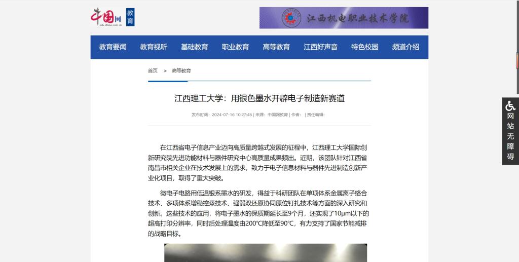 微电子电路用低温银系墨水的研发,得益于科研团队在单项体系金属离子络合技术、多项体系增稳控蒸技术、强弱双还原协同原位钉扎技术等方面的深入研究和创新。这些技术的应用,将电子墨水的保质期延长至9个月,还实现了10μm以下的超高打印分辨率,同时后处理温度由200℃降低至90℃,有力支持了国家节能减排的战略目标。