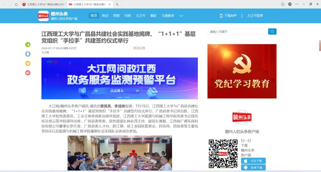 与广昌县共建社会实践基地揭牌、“1+1+1”基层党组织“手拉手”共建签约仪式举行,广昌县委书记吴自胜,木瓜视频