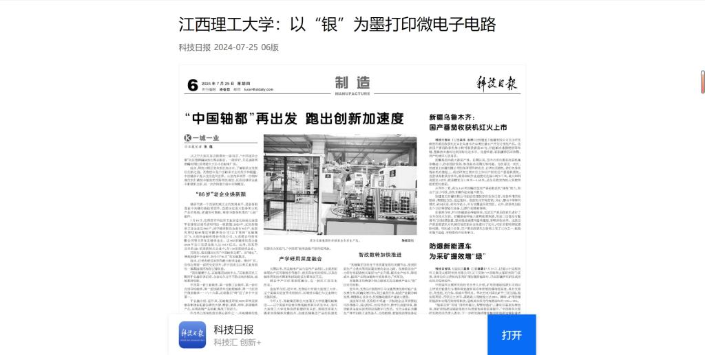 微电子电路用低温银系墨水的研发,得益于科研团队在单相体系金属离子络合技术、多相体系增稳控蒸技术、强弱双还原协同原位钉扎技术等方面的深入研究和创新。这些技术的应用,将电子墨水的保质期延长至9个月,并实现10微米以下的超高打印分辨率,同时后处理温度由200摄氏度降低至90摄氏度,有助于节能减排。