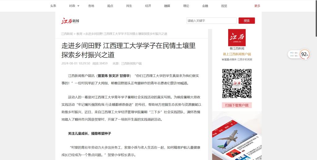 经济管理学院暑期“三下乡”社会实践团队,满怀热情地踏入了赣州市兴国县贺堂村,开展了一场别开生面的实践调研活动。