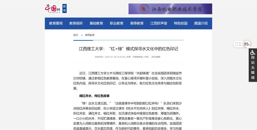 市政工程党支部书记龙焙表示:“系里将协同有关部门,以水文化保护、传承、弘扬、利用为主线,加强水文化系统研究,深入挖掘苏区时期水文化蕴含的时代价值,积极开展水文化宣传教育,拓展水文化的影响力,为推动新时代水利高质量发展凝聚精神力量。”