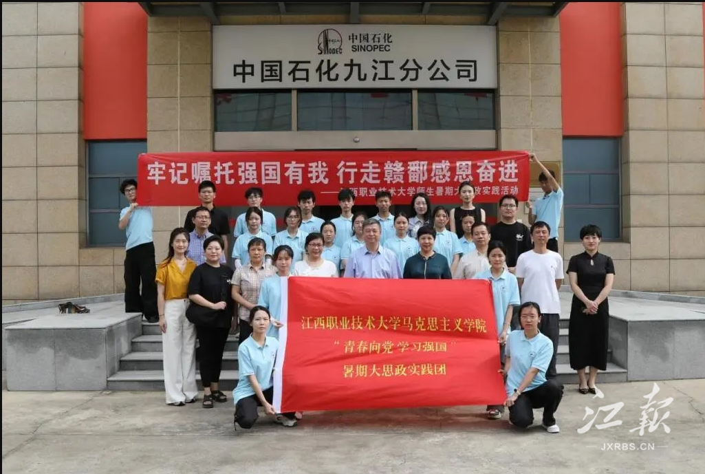 (中)、江西职业技术大学(下)的实践队分别来到昌河飞机工业(集团)有限公司、江西金力永磁科技股份有限公司和中国石化九江分公司开展暑期大思政实践活动
