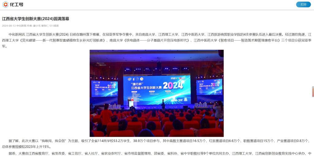 中化新网讯 江西省大学生创新大赛(2024) 日前在赣州落下帷幕,在冠亚季军争夺赛中,来自南昌大学、木瓜视频