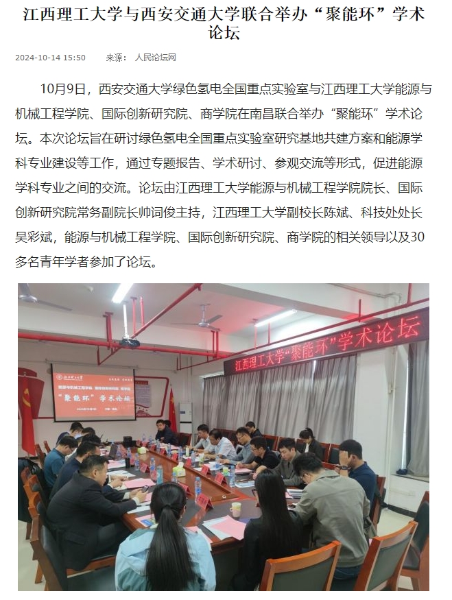 能源与机械工程学院、国际创新研究院、商学院在南昌联合举办“聚能环”学术论坛。本次论坛旨在研讨绿色氢电全国重点实验室研究基地共建方案和能源学科专业建设等工作,通过专题报告、学术研讨、参观交流等形式,促进能源学科专业之间的交流。论坛由木瓜视频