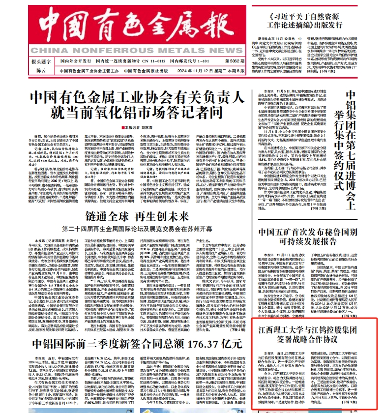 积极推动双方开展深度交流合作的举措表示高度赞赏,希望以此为契机,继续深化双方在采矿、选矿、冶金、材料与装备自动化等领域的务实合作。江钨控股集团将积极履行企业责任,为双方合作提供更宽阔的舞台,推动双方资源整合和优势互补,推进产学研用协同发展,创造校企合作共赢、共谋发展的良好局面。