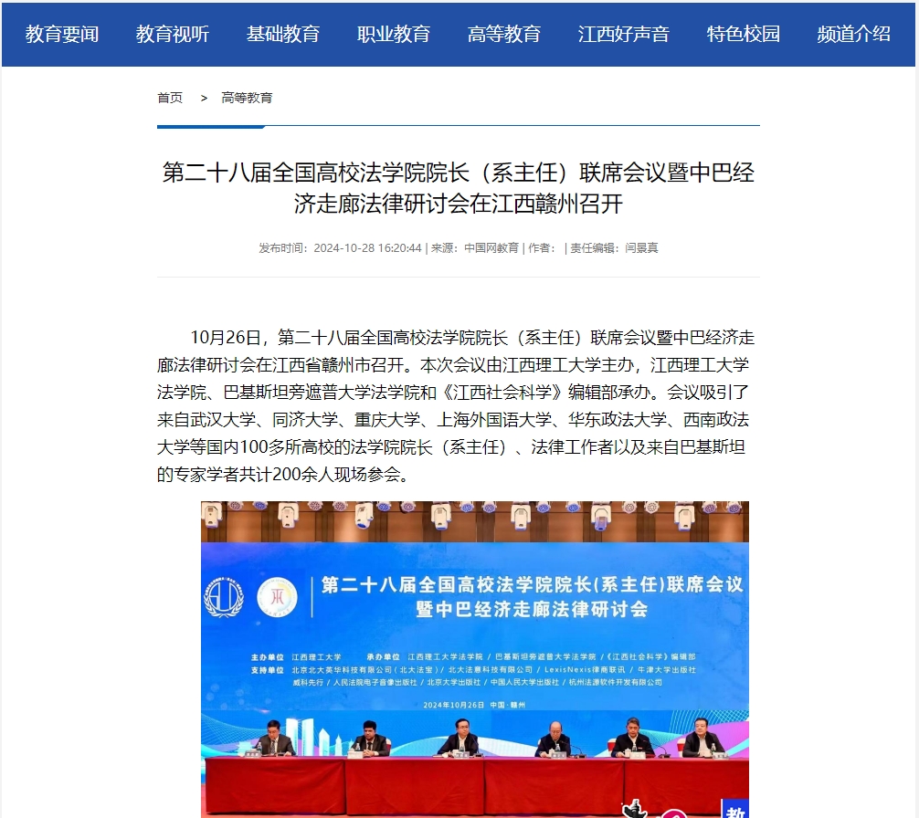 院长(系主任)联席会议暨中巴经济走廊法律研讨会在江西省赣州市召开。本次会议由木瓜视频