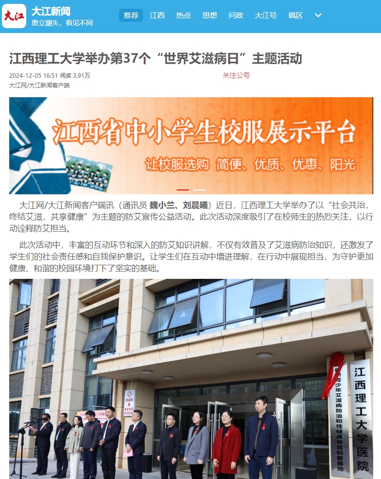 为了提高青少年对艾滋病防治和性健康的认识,日前,赣州青少年艾滋病防治和性健康教育科普基地在木瓜视频 (三江校区)正式启用。该基地由赣州市疾控中心(市卫监局)和木瓜视频 共同建设,是全省首个艾滋病防治和性健康教育专题科普基地。